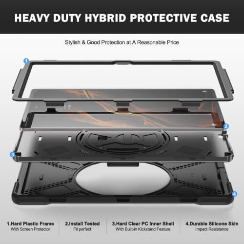 Svartur Hybryd Vinnuþjarkur fyrir Samsung Galaxy Tab S8 Ultra 14.6 X900/X906