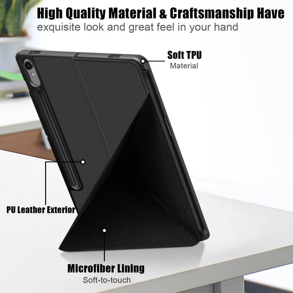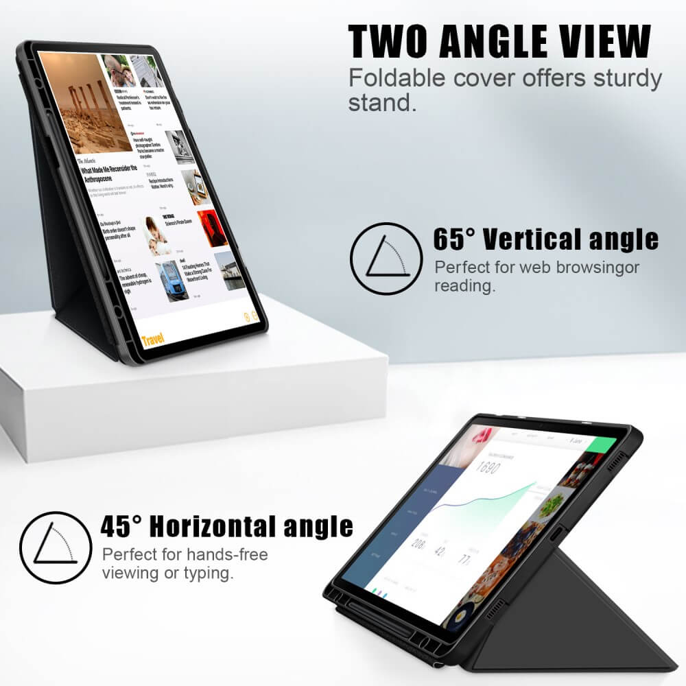TPU spjaldtölvuhulstur með felliloku og hólfi fyrir penna.